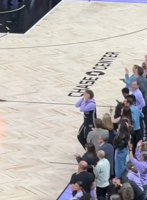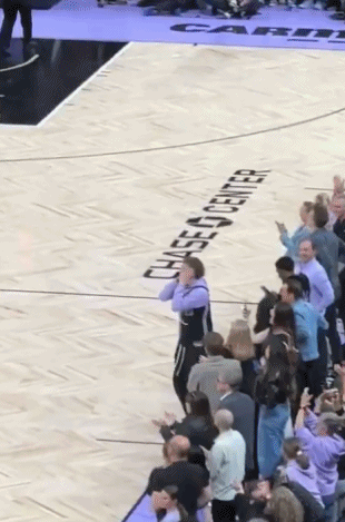 勇士球员波杰姆斯基也在现场观战,末节女武神锁定胜局时,他对着狂热球星克拉克做出库里经典的晚安手势。