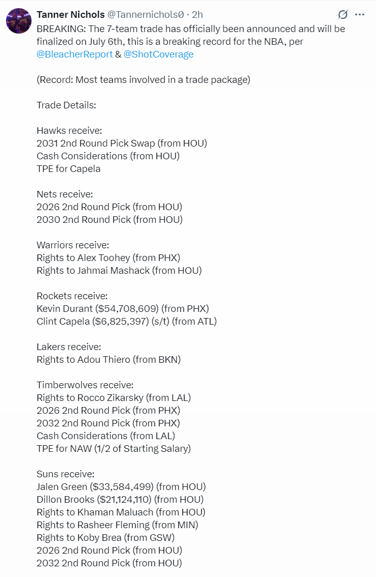 可BR的爆料来看关于杜兰特这笔7方大交易的细节并没有芬尼史密斯与惠特莫尔,火箭最终是裸签芬尼史密斯而非先签后换,所以火箭不仅得到了芬尼史密斯还留住了惠特莫尔。